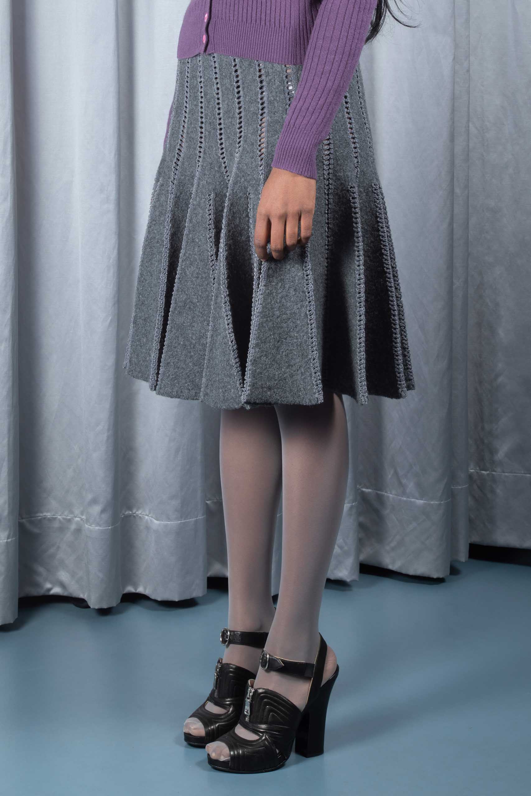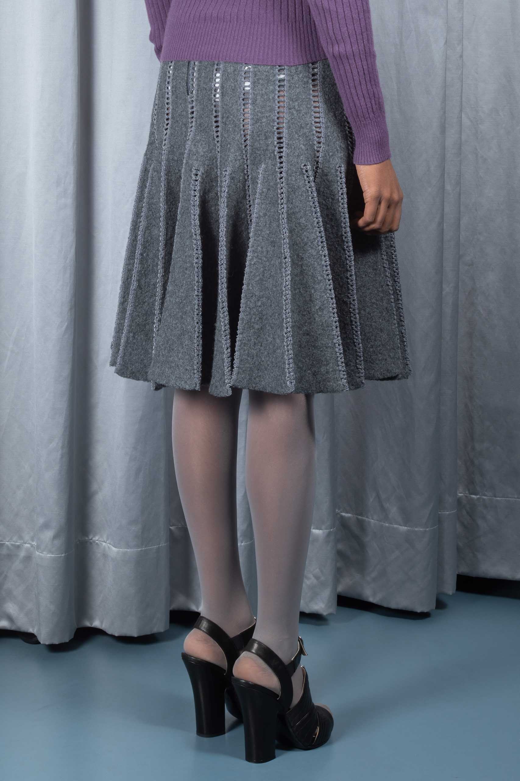 Cut-out felt cloth godet skirt