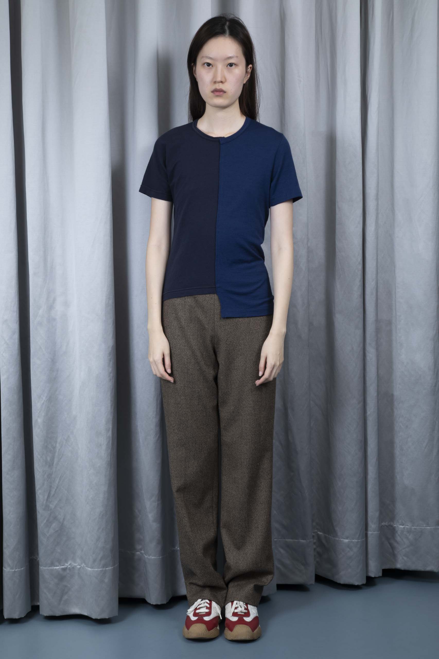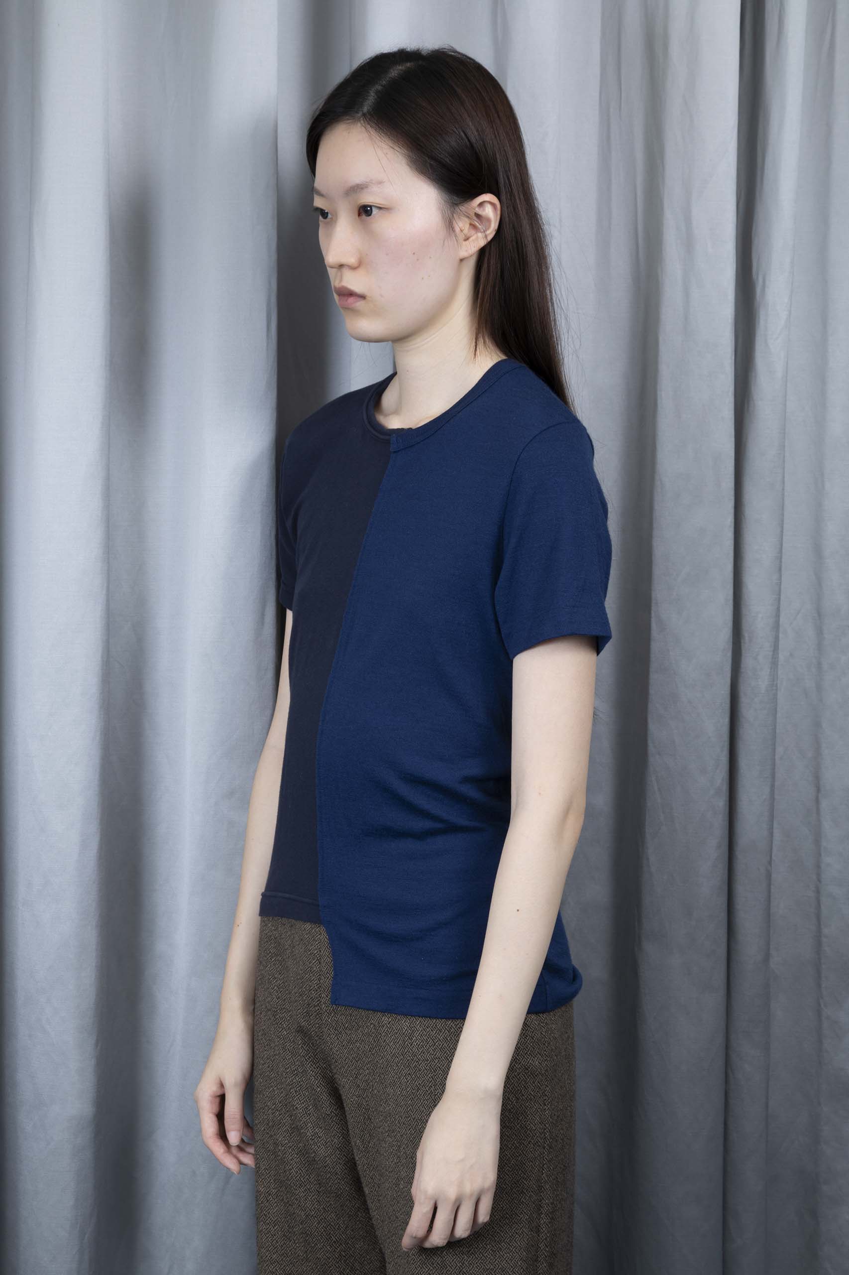 • longer half: 100% wool knit, indigo blue