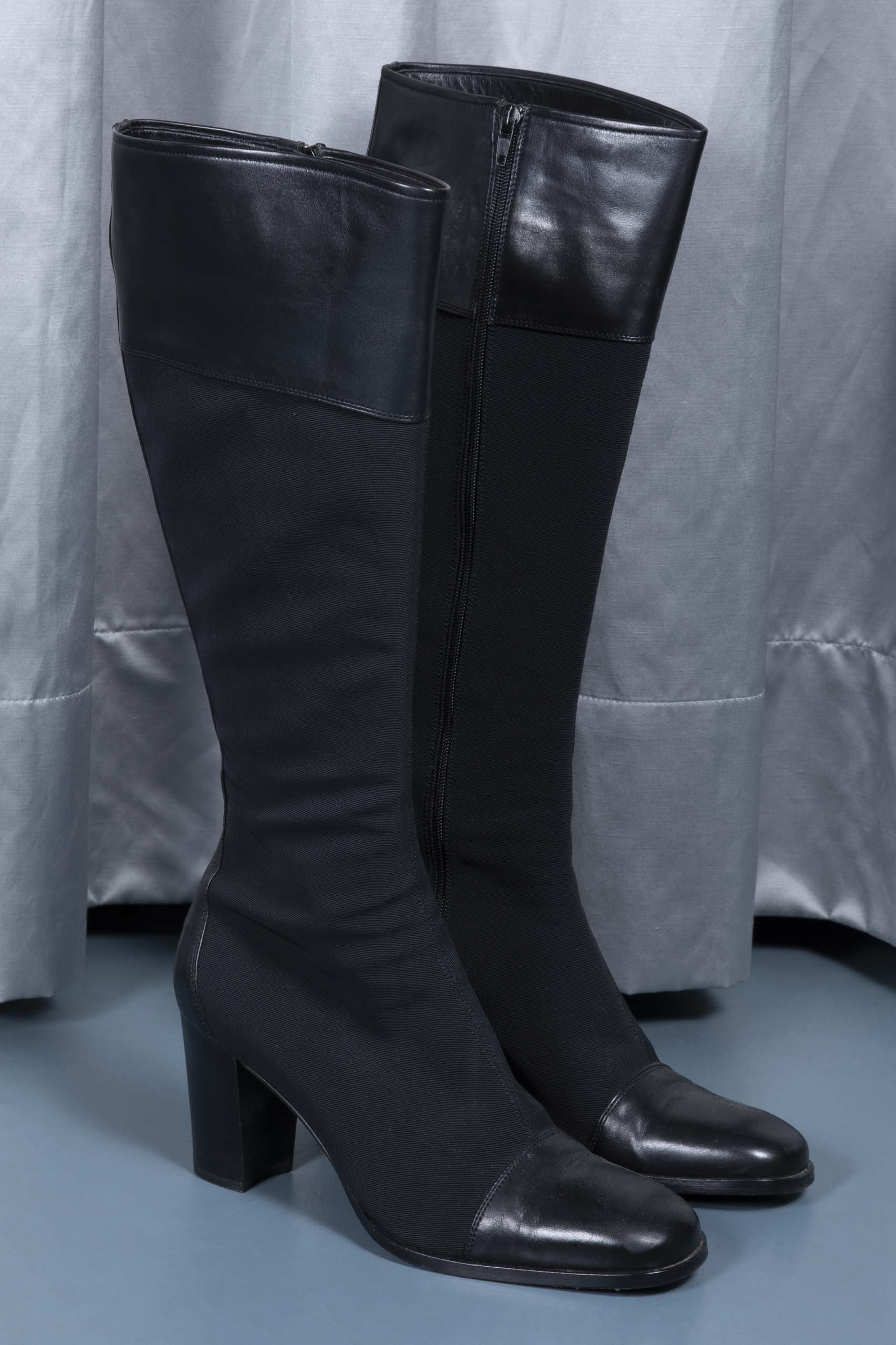 Faille and leather boots