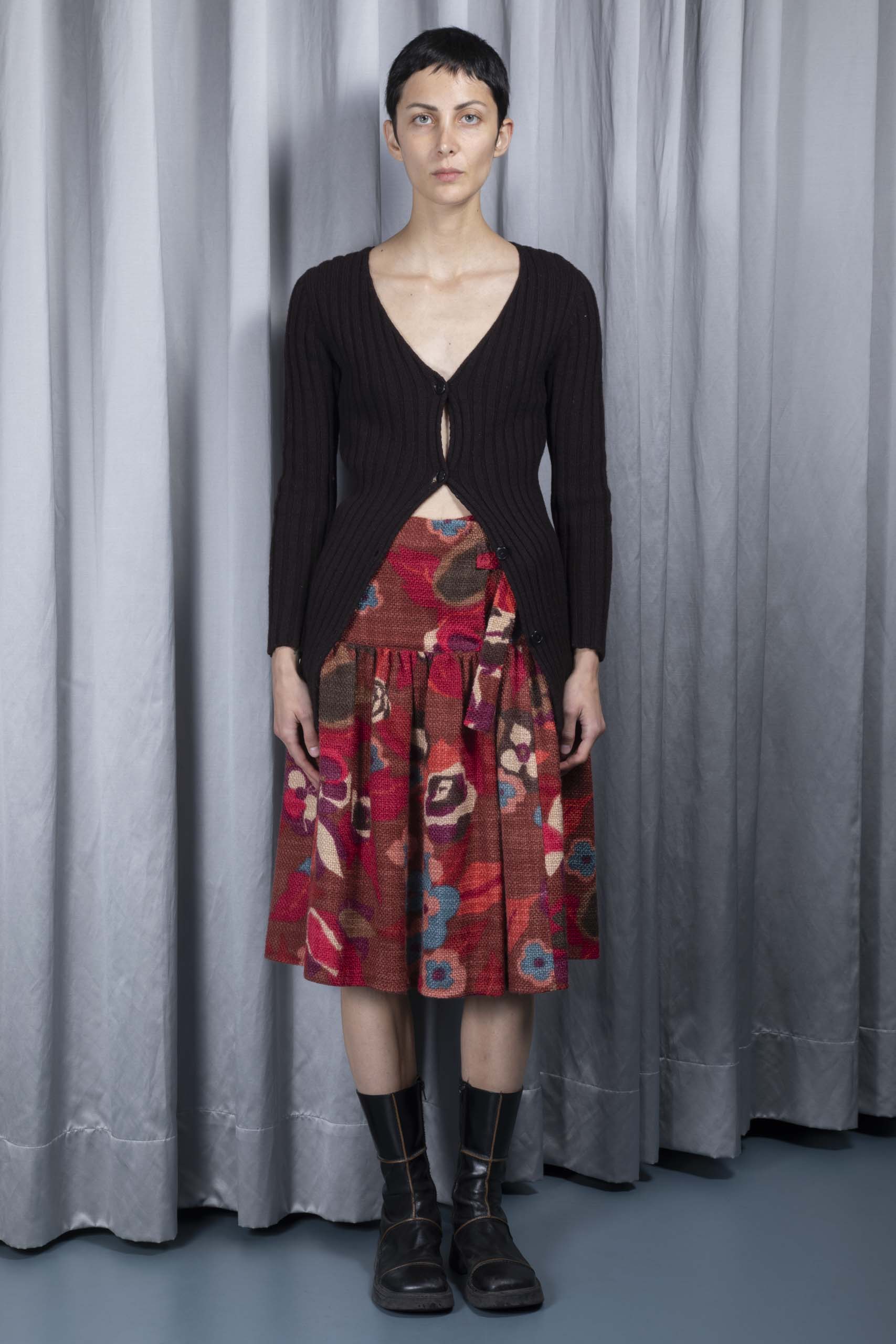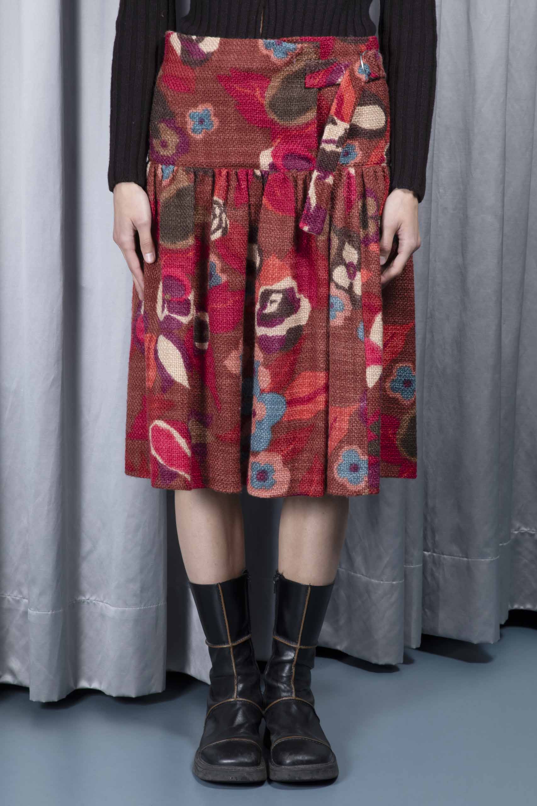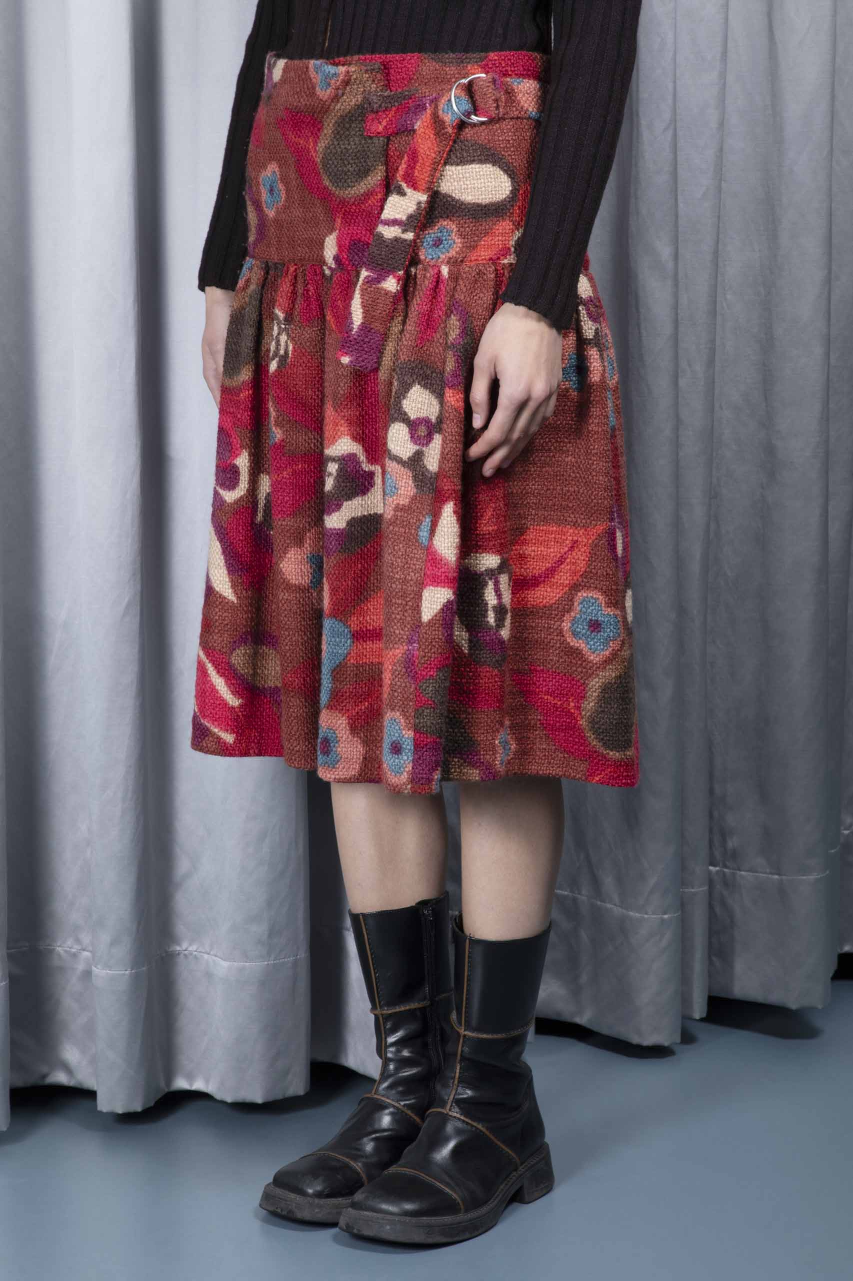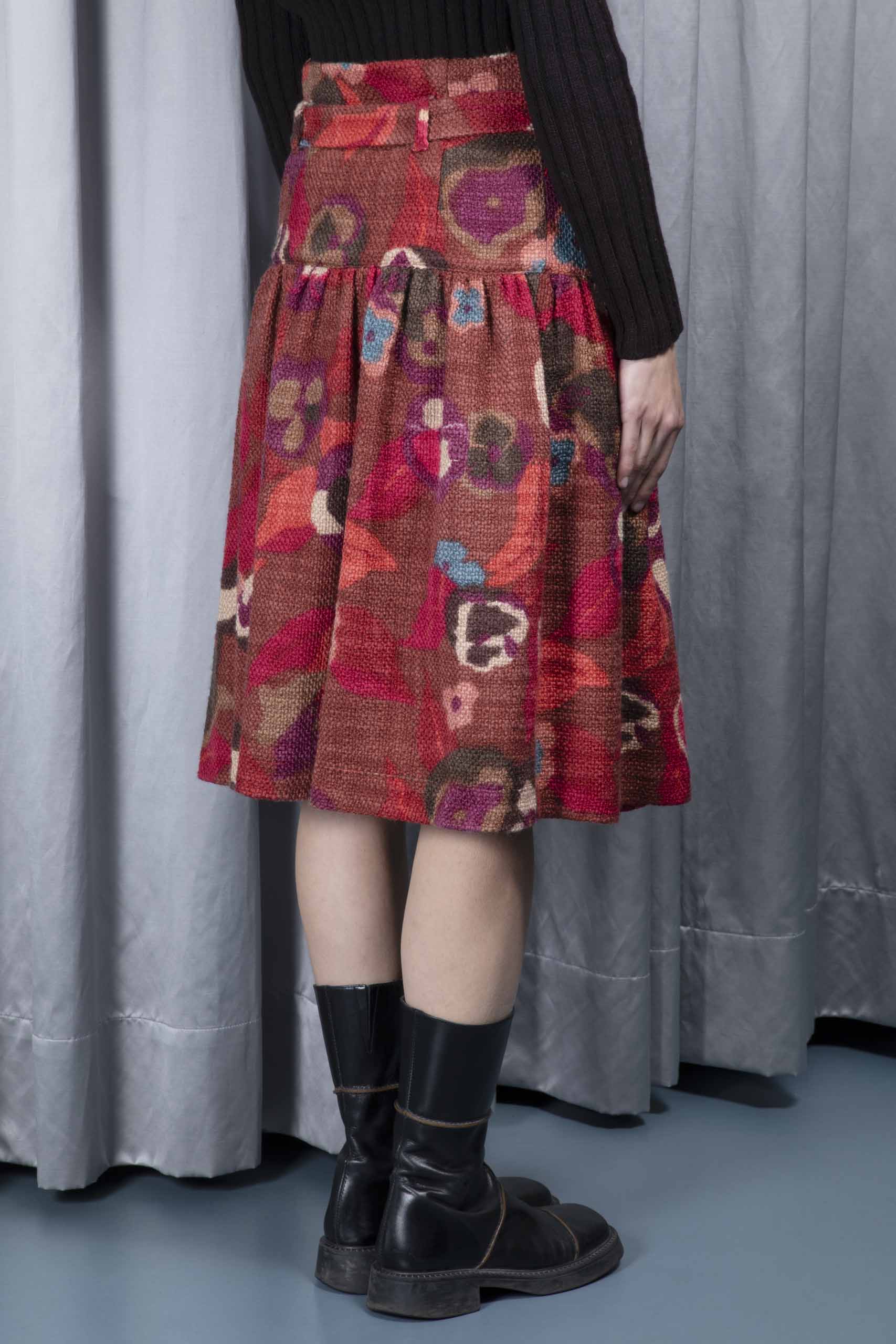 Floral-bouclé yoke skirt