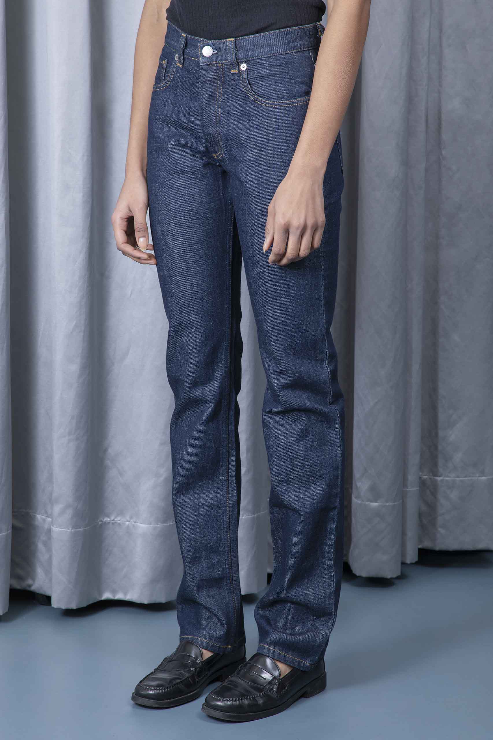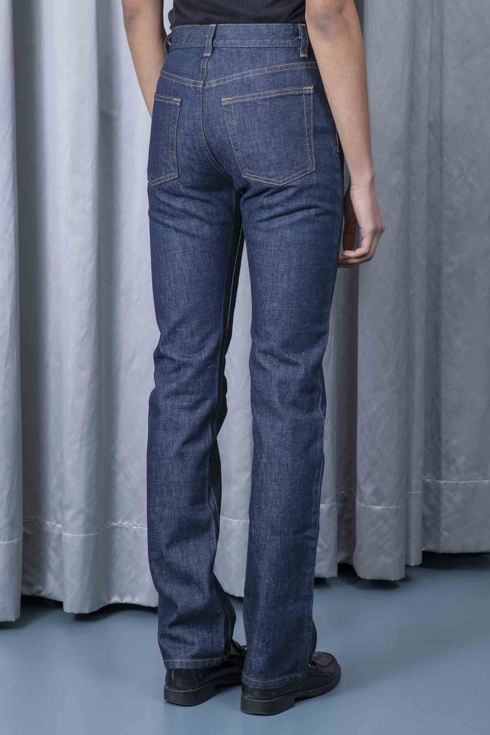 Five-pockets dark blue denim trousers