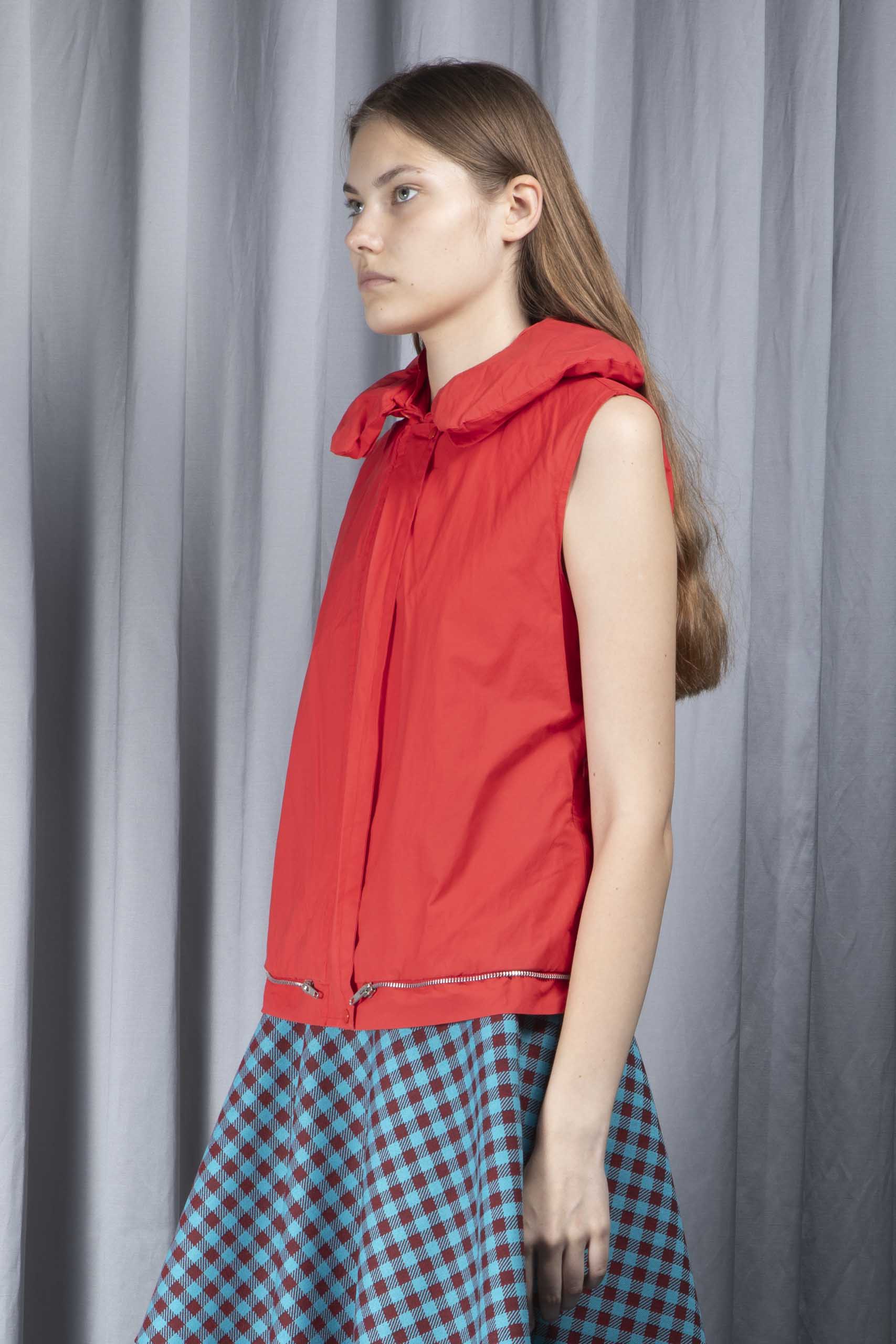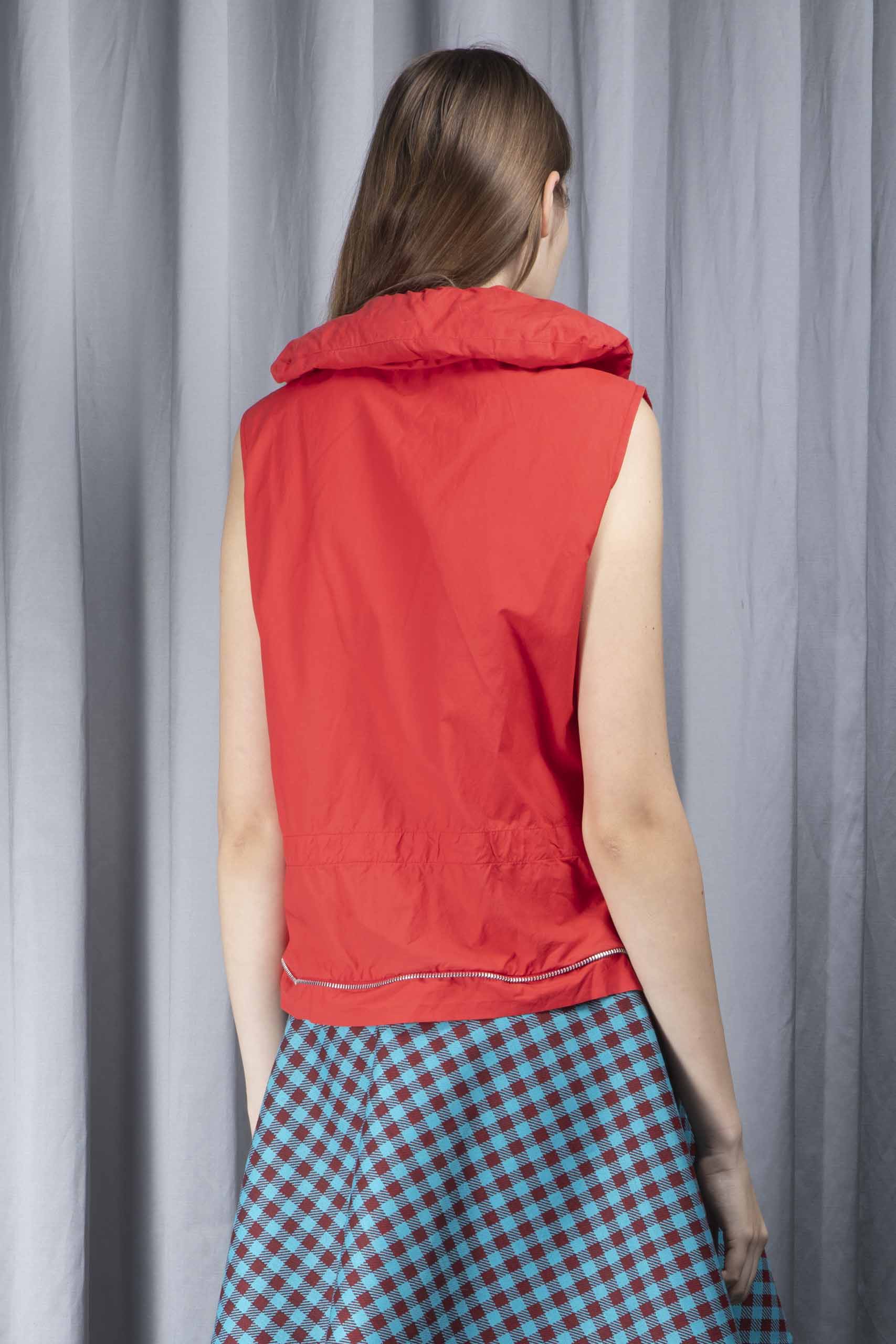 • detachable puffed collar (the collar has an internal pocket with a zip closure and a pull-out red nylon hood)
