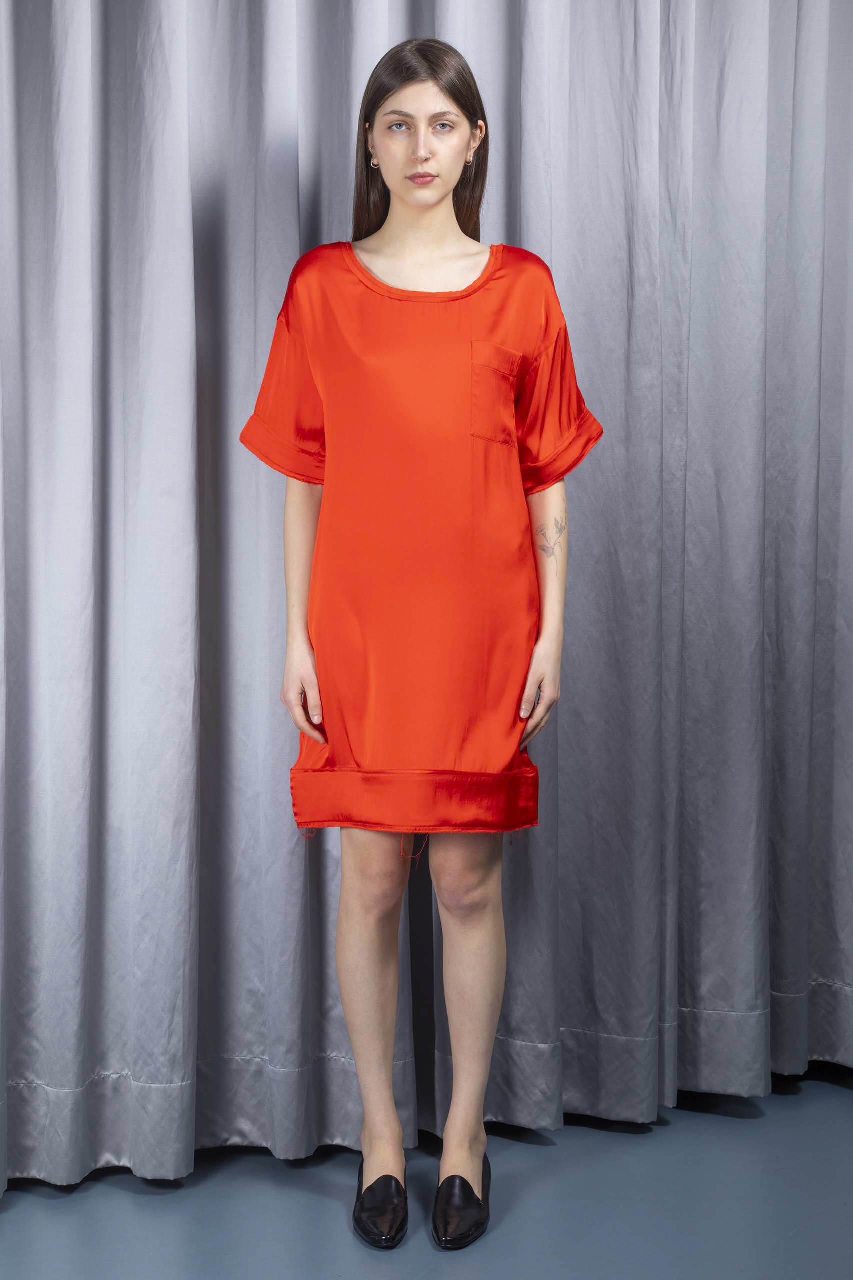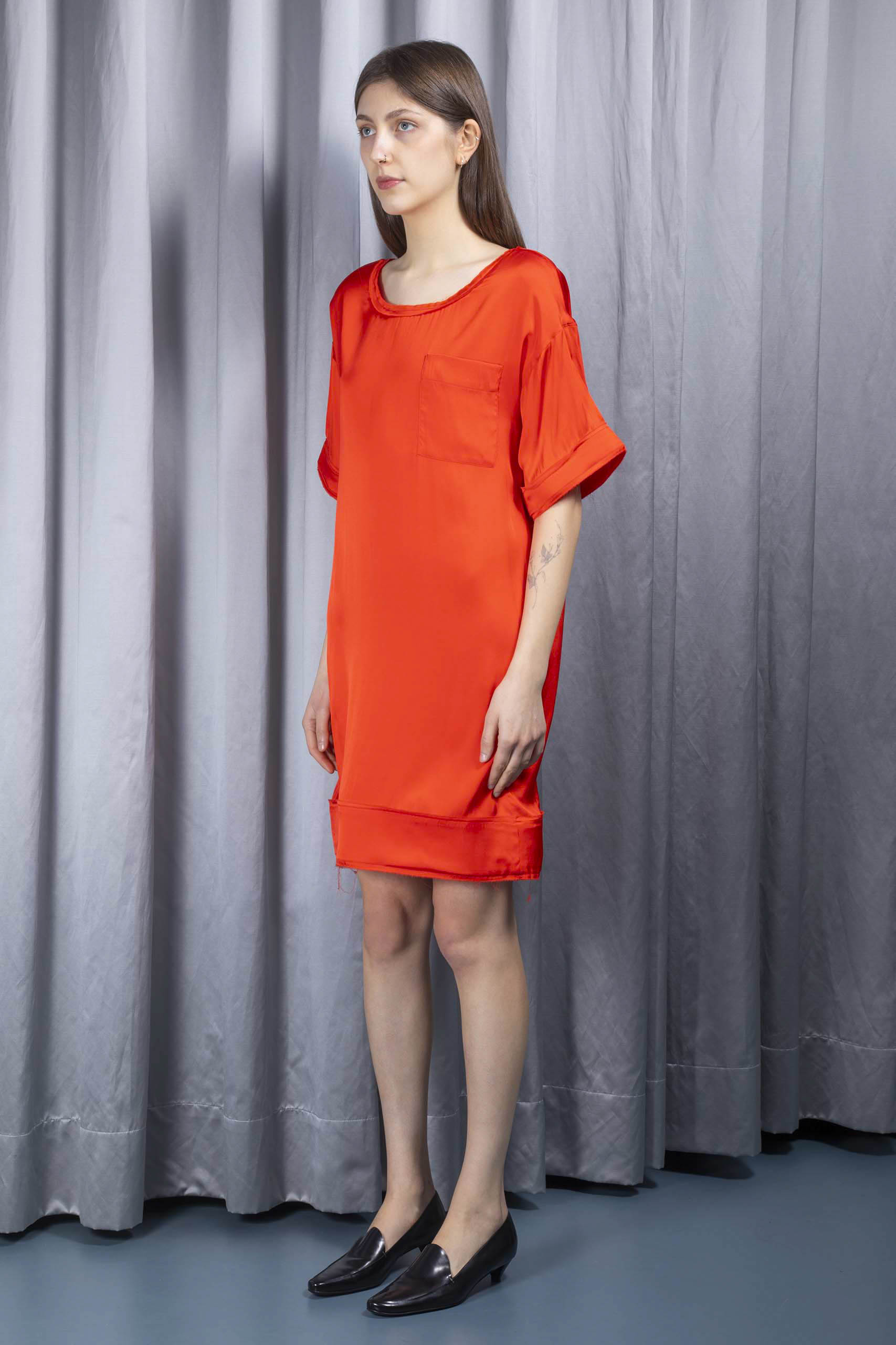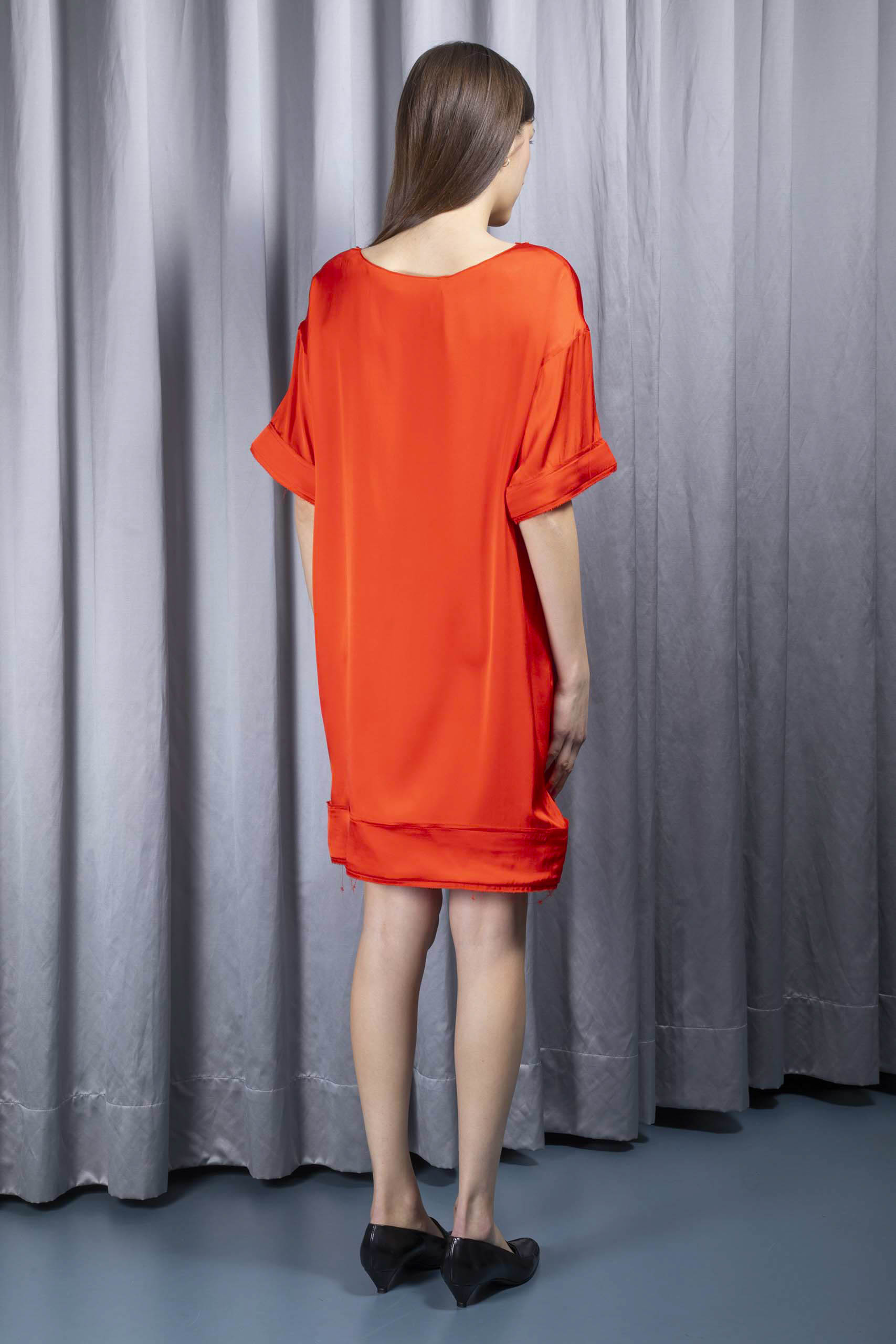 • tangerine-red satin lining
