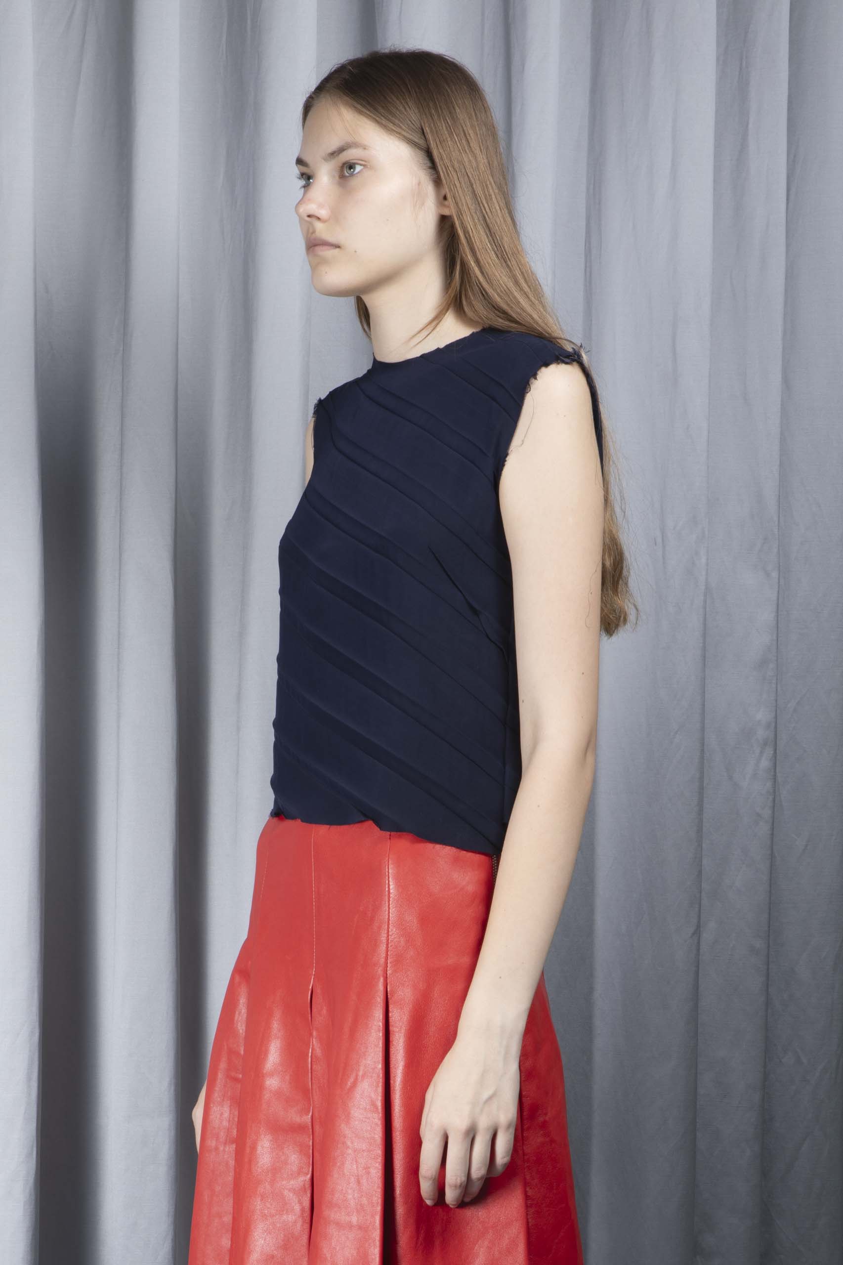 Frayed-hem pleated top