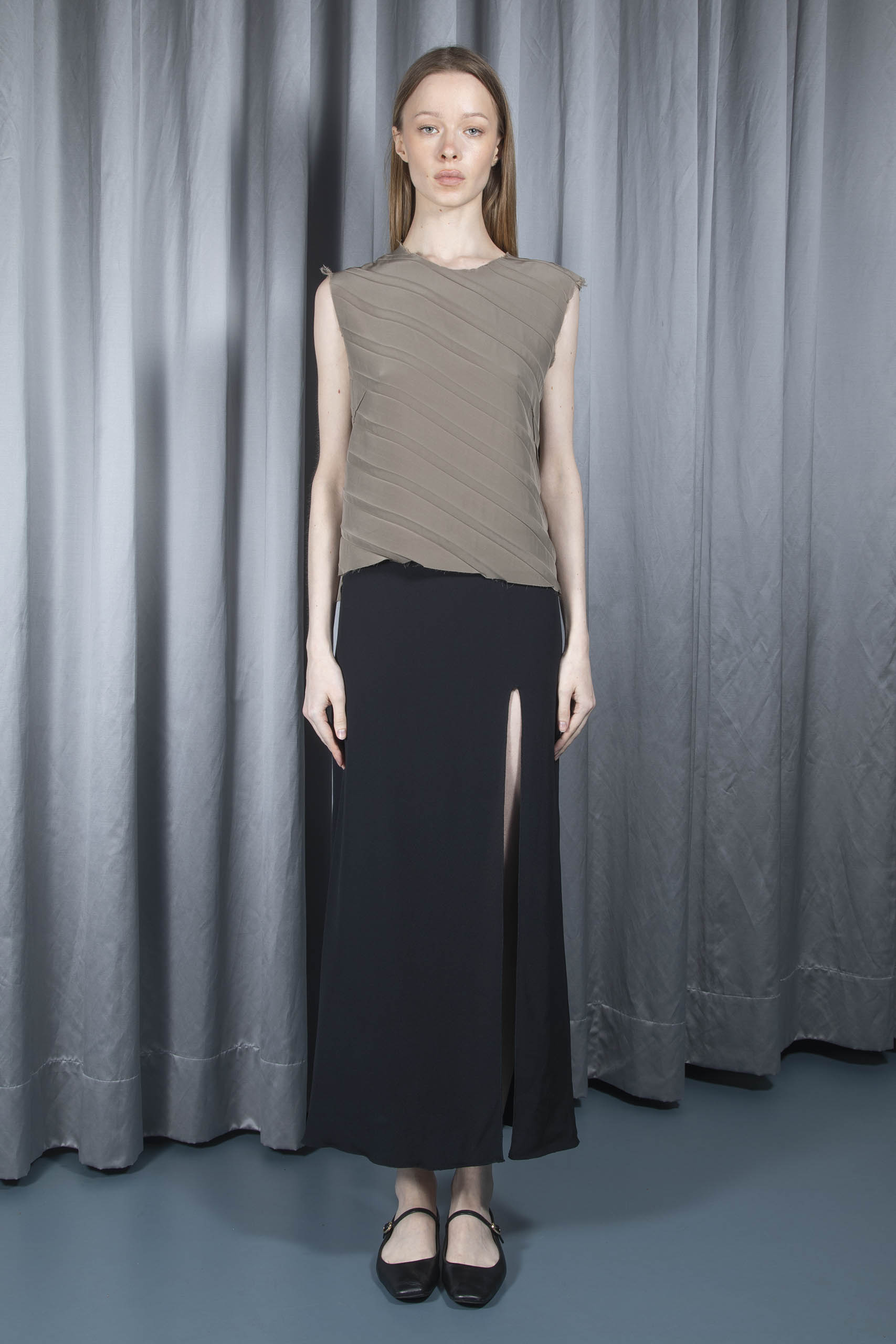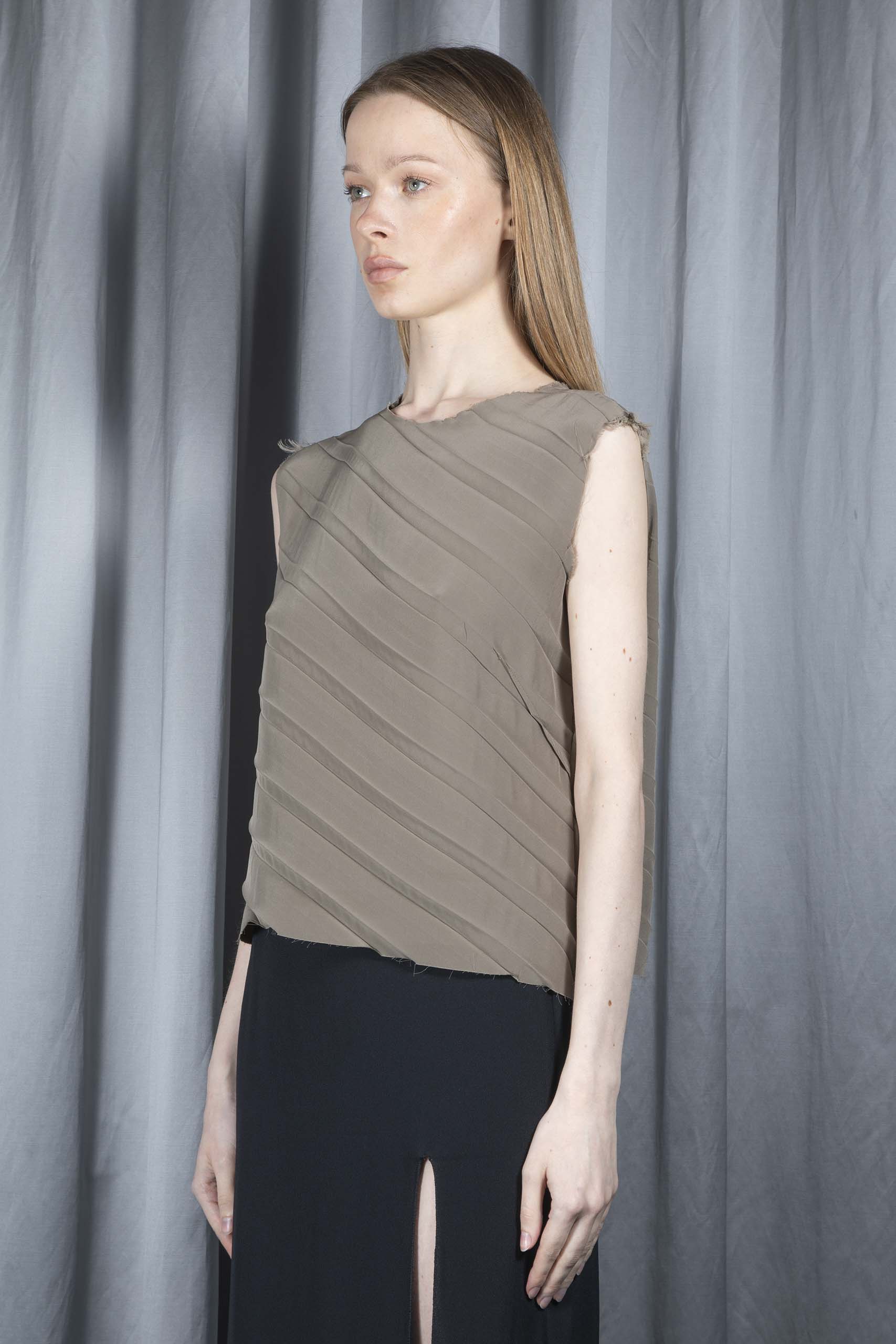 Frayed-hem pleated top