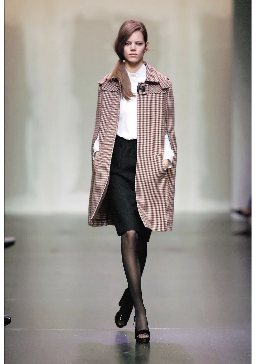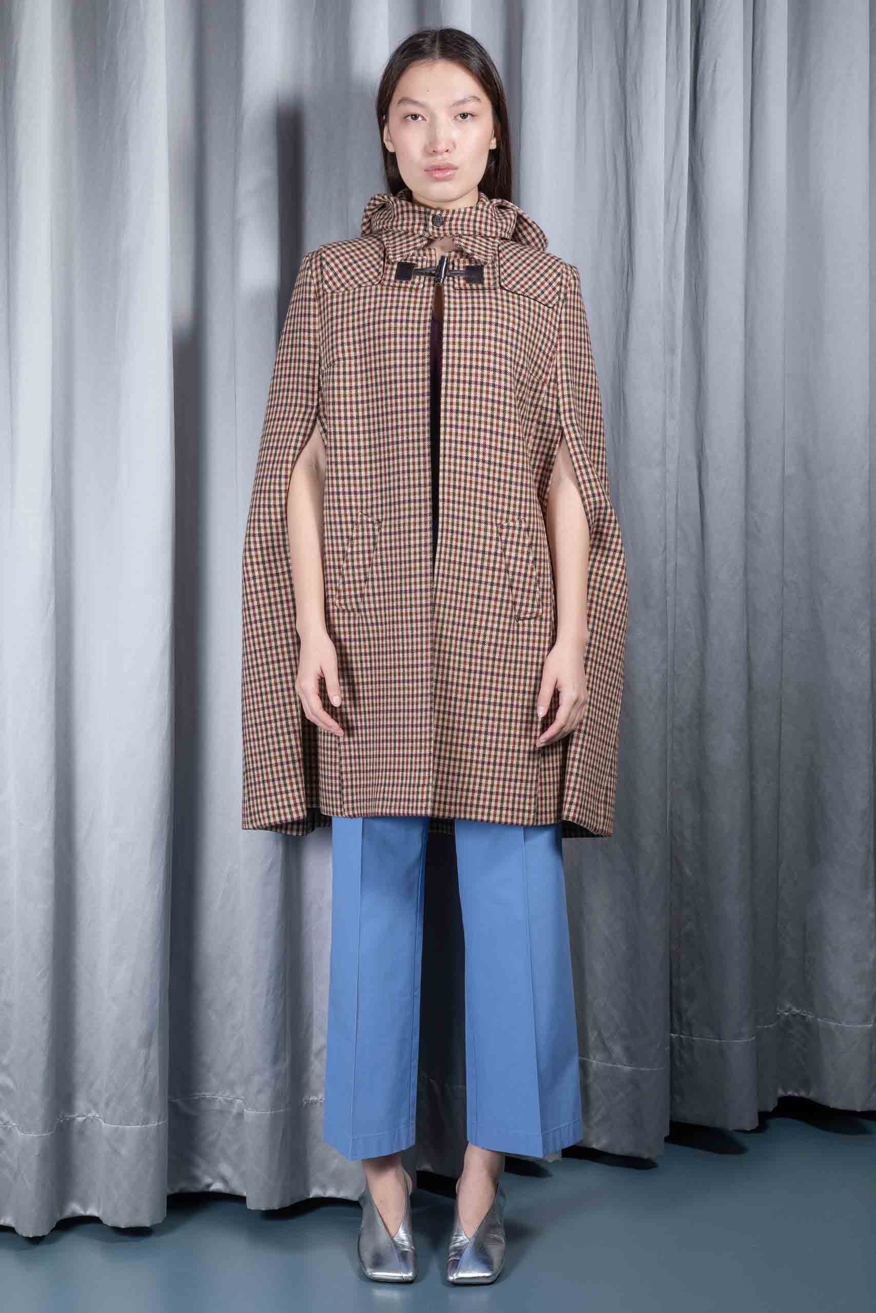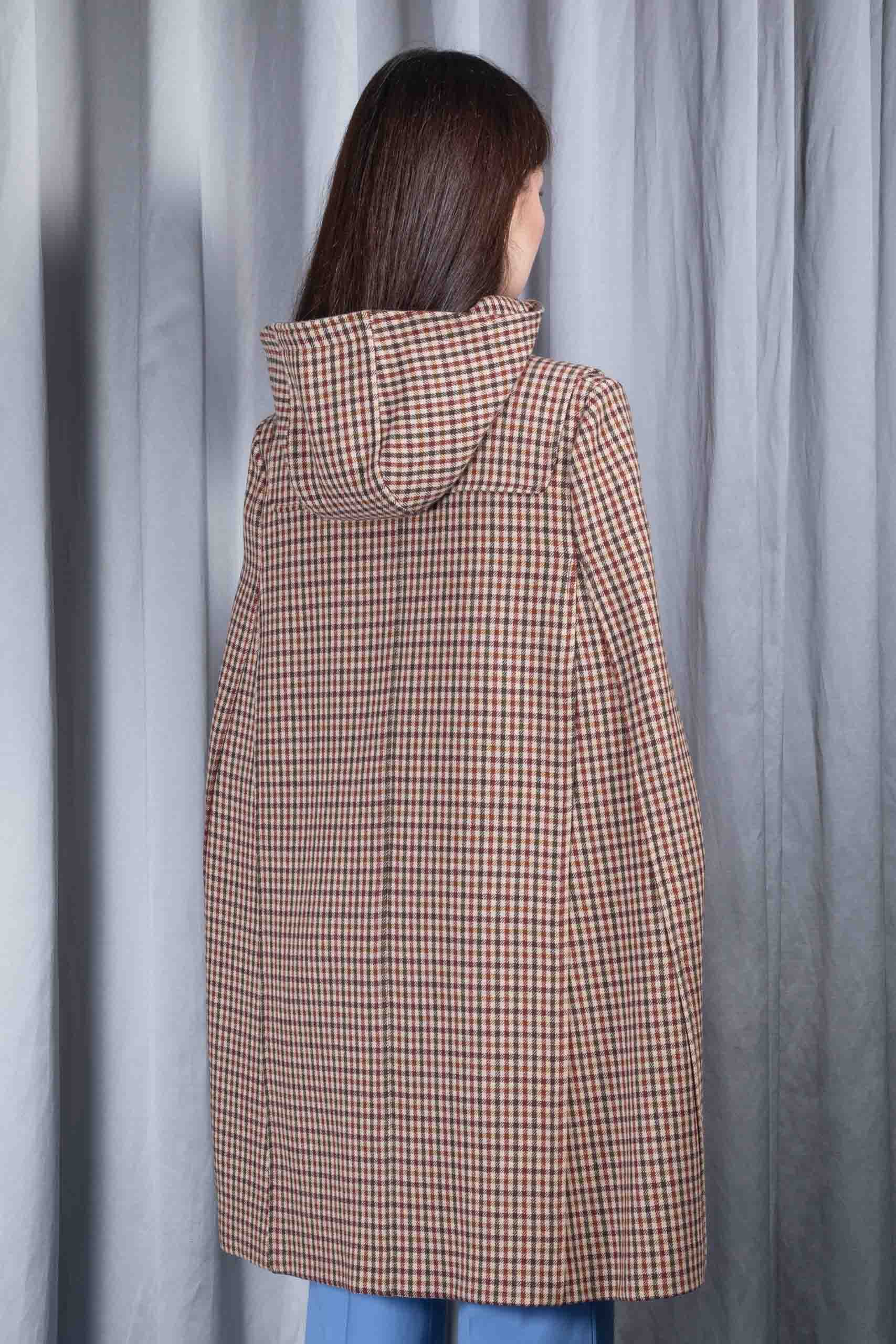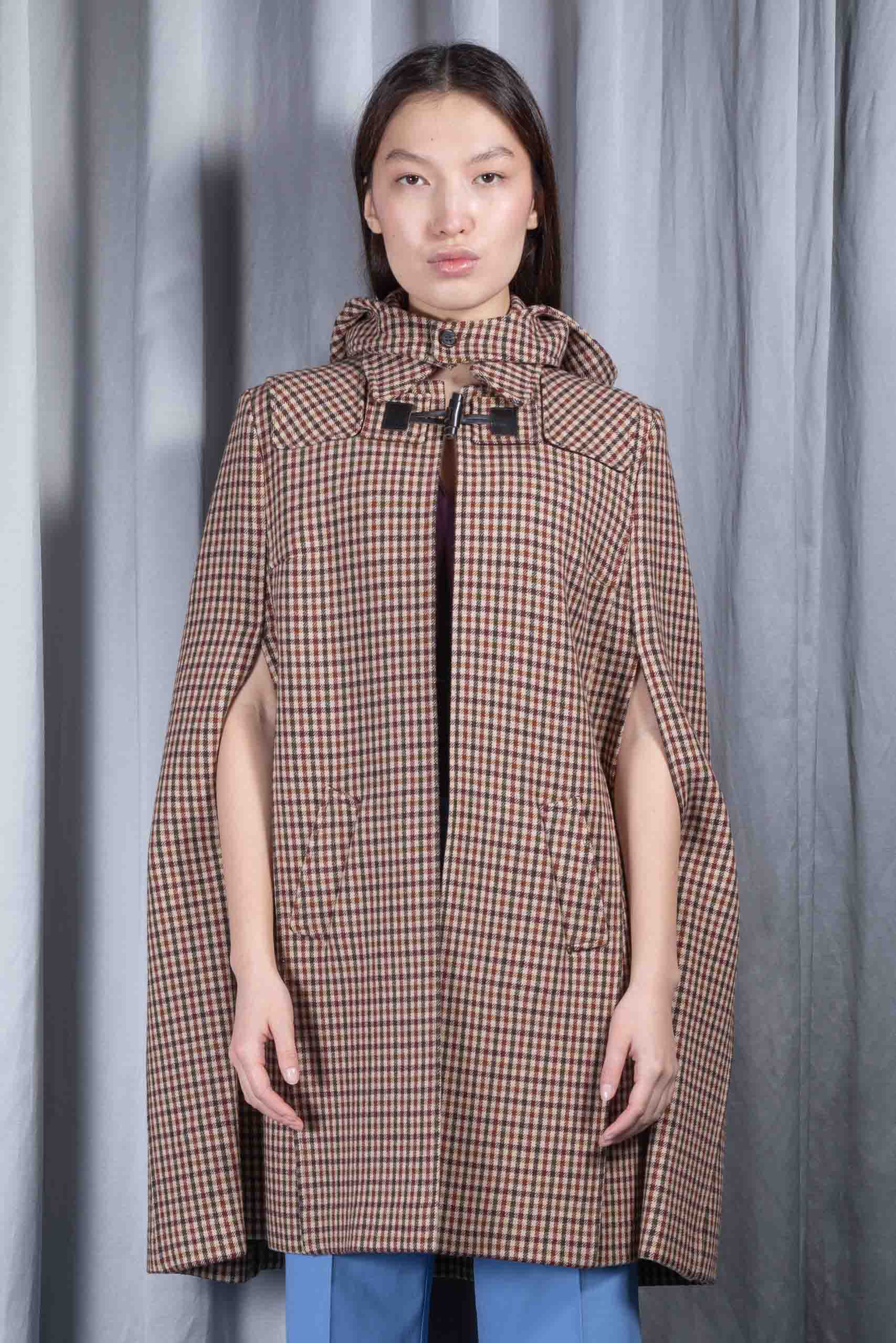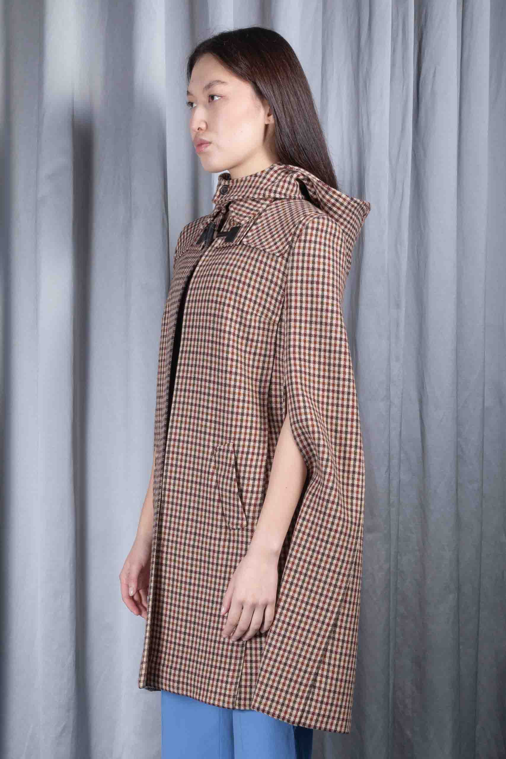 Checkered wool hooded cape