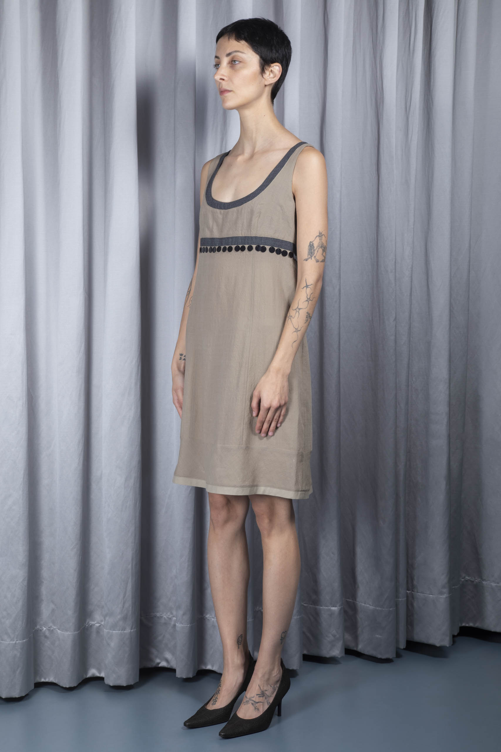 Sequined-waist gabardine dress