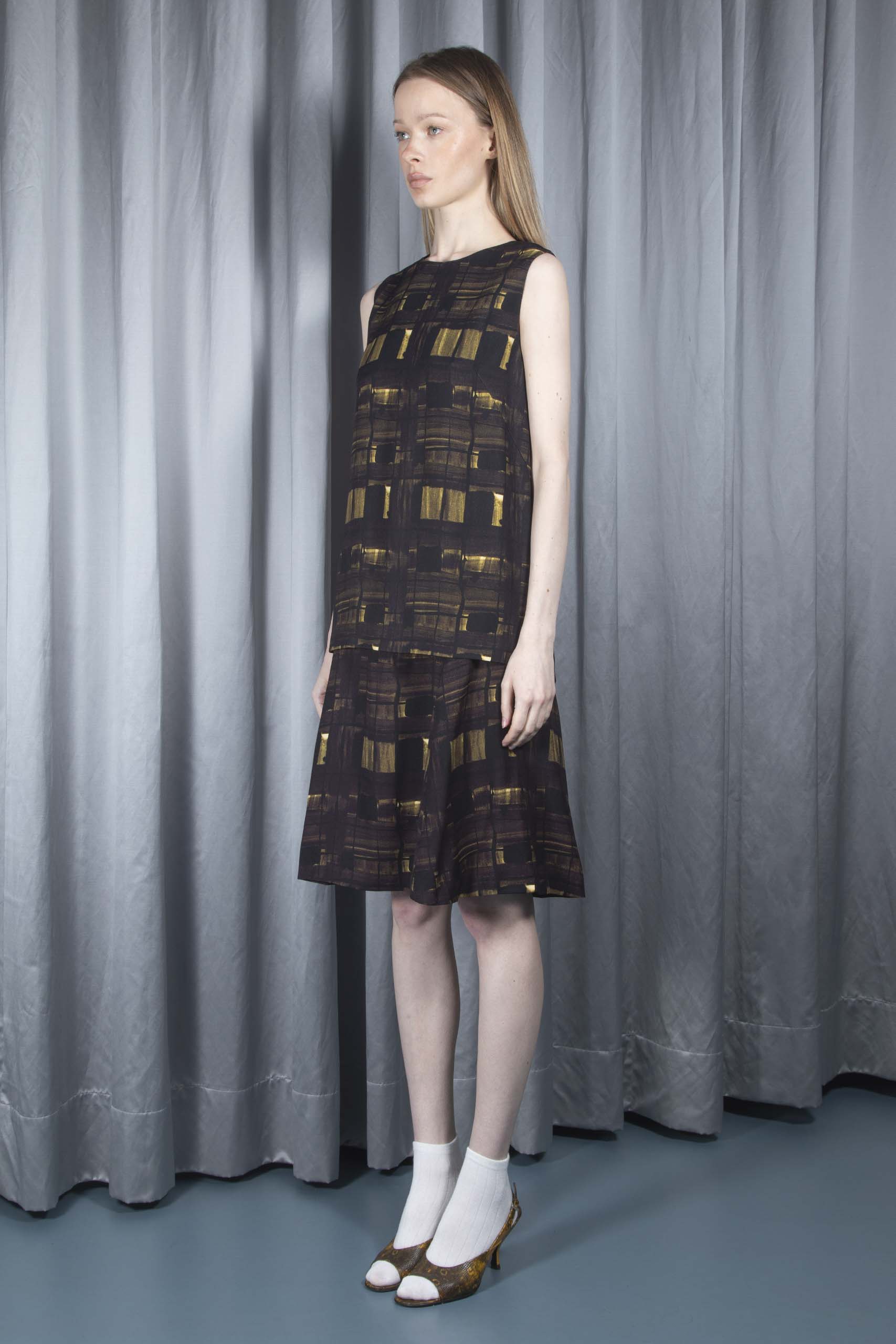 • skirt: zip fastening, flared
