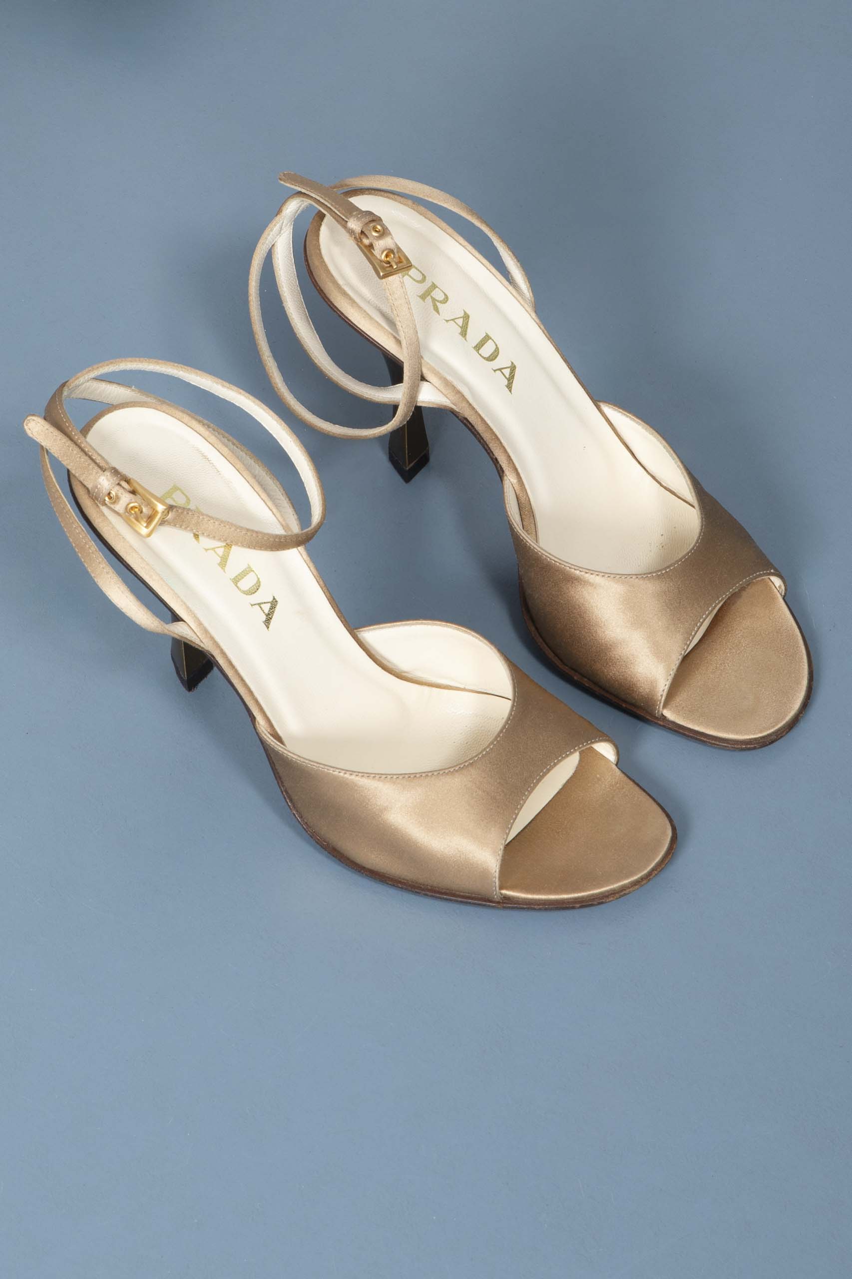 - beige satin adjustable ankle straps