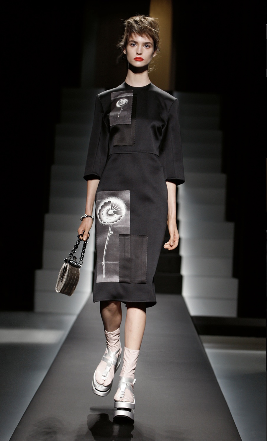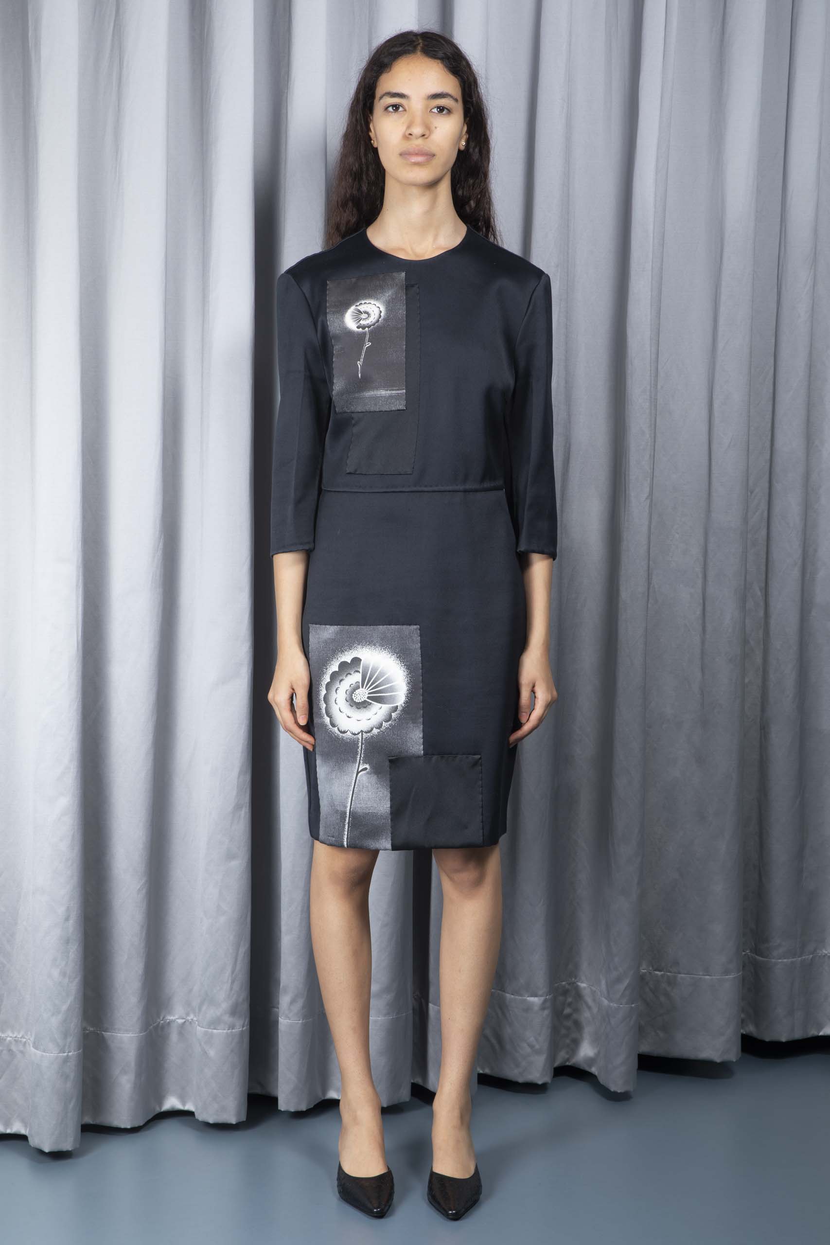 Floral-patch silk dress