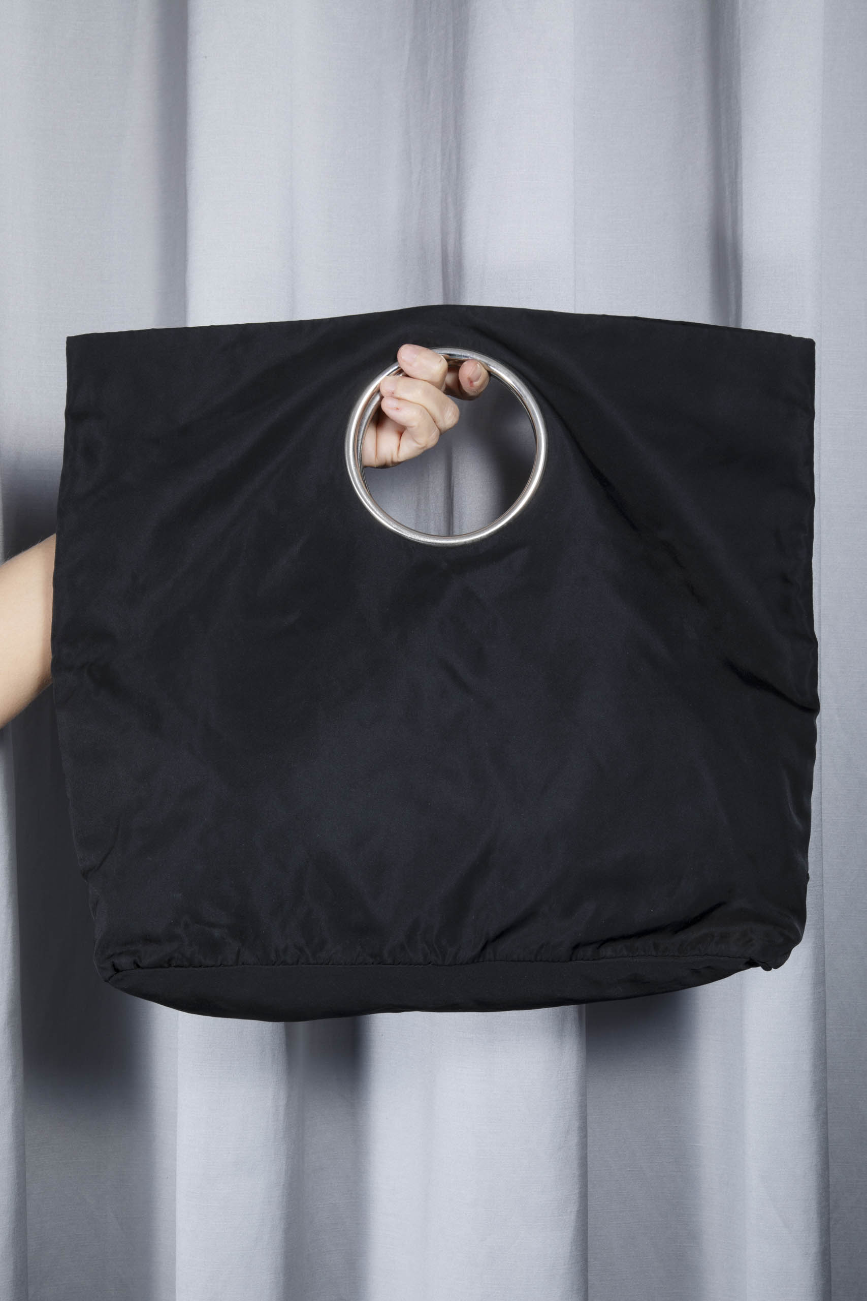 Hole-handle nylon handbag