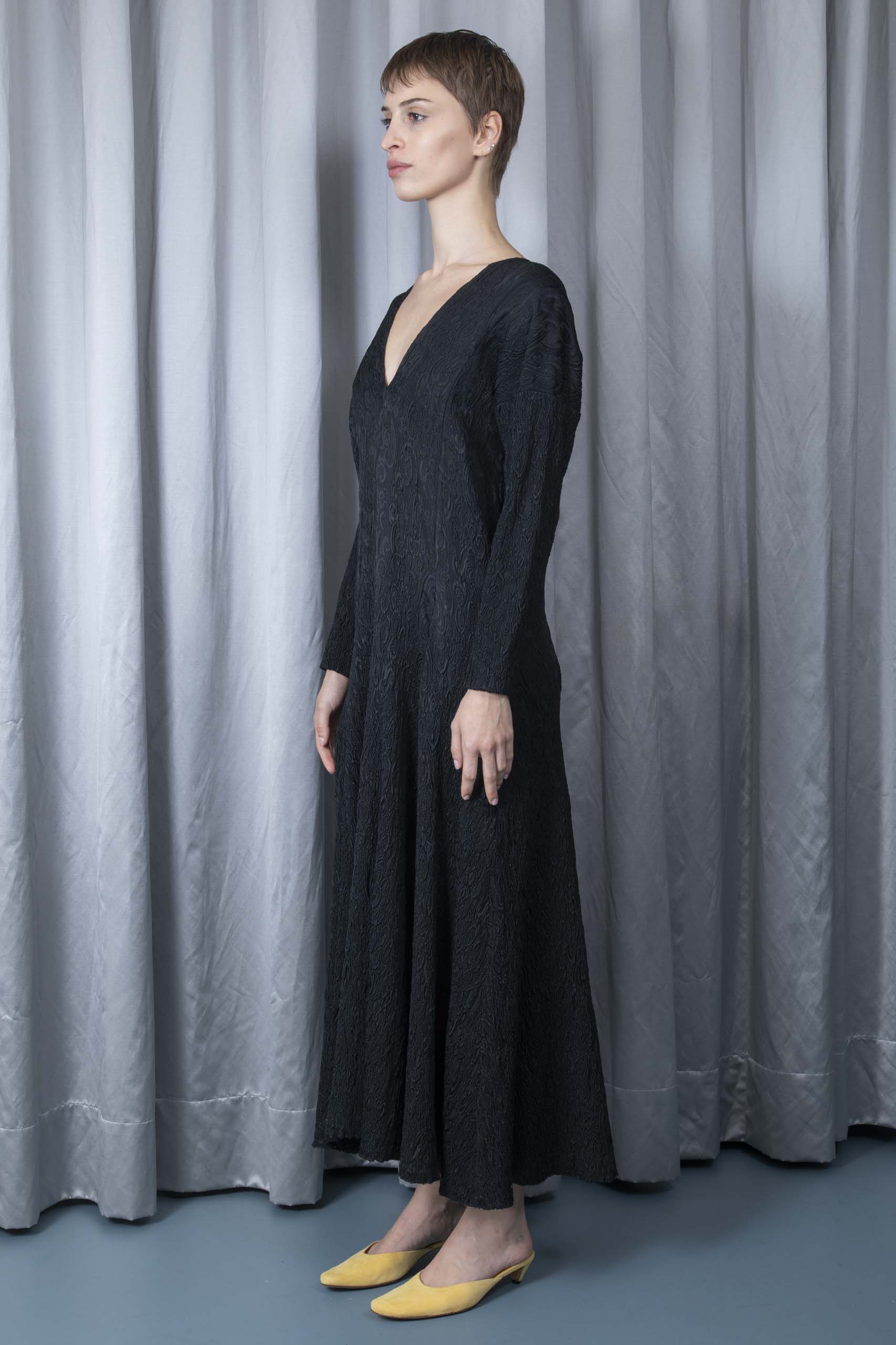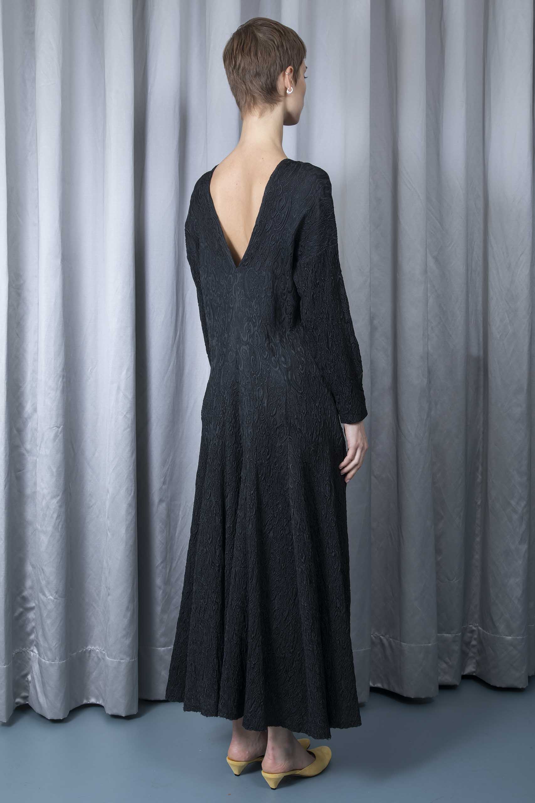 Circle-skirt brocade dress