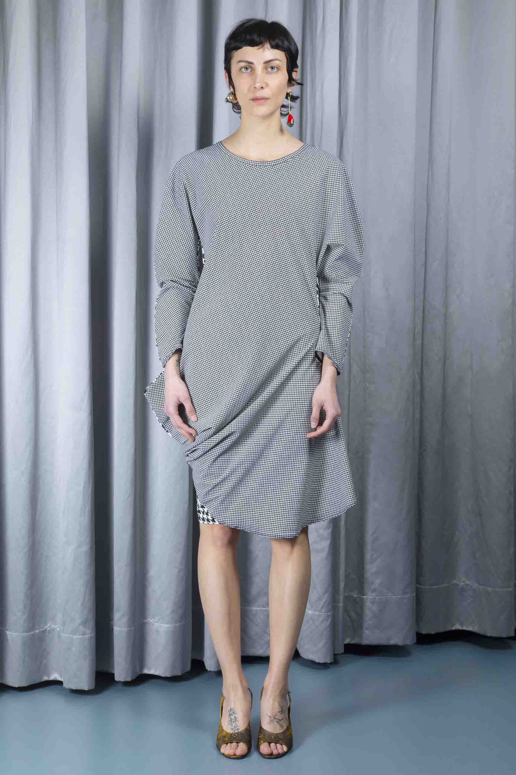 Houndstooth asymmetric dress